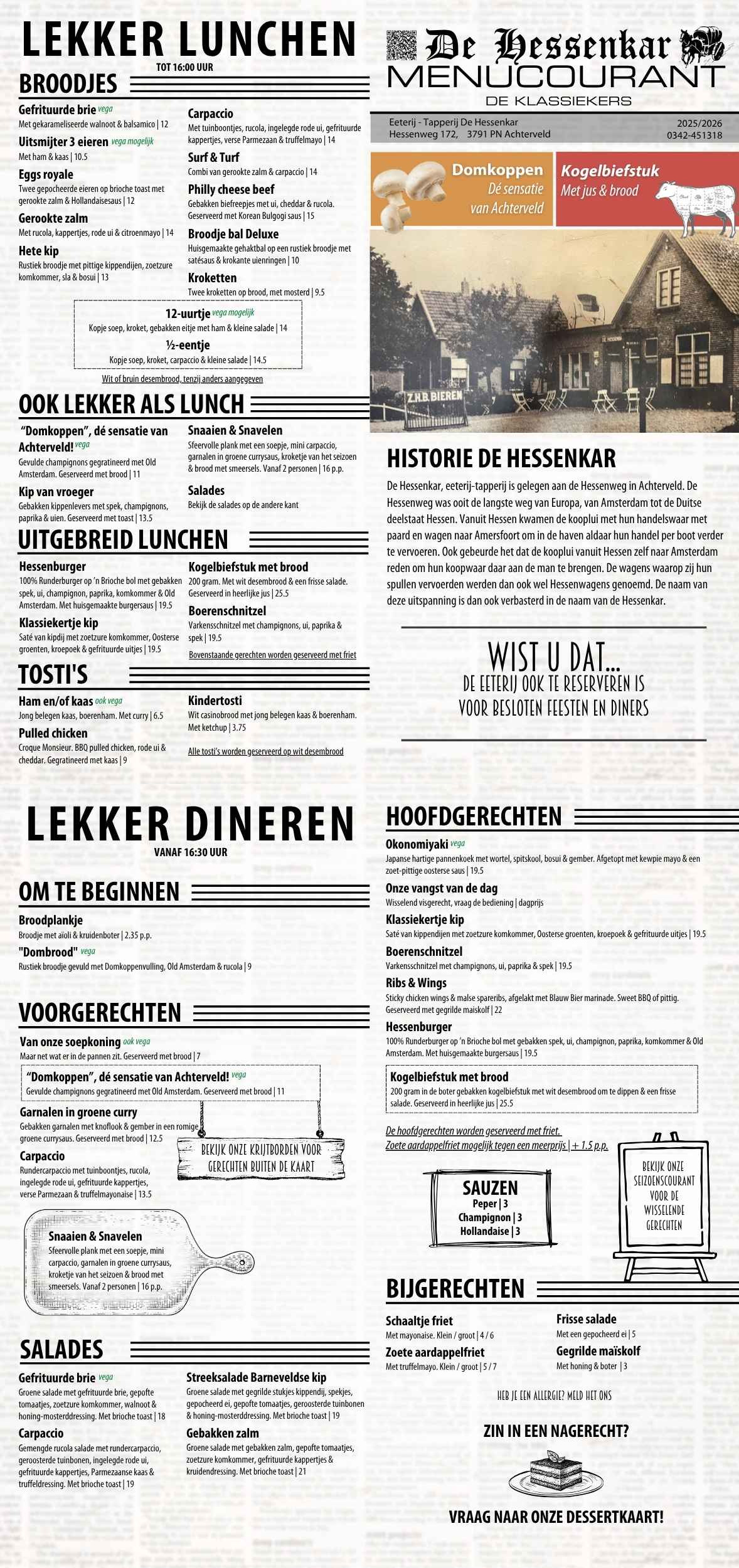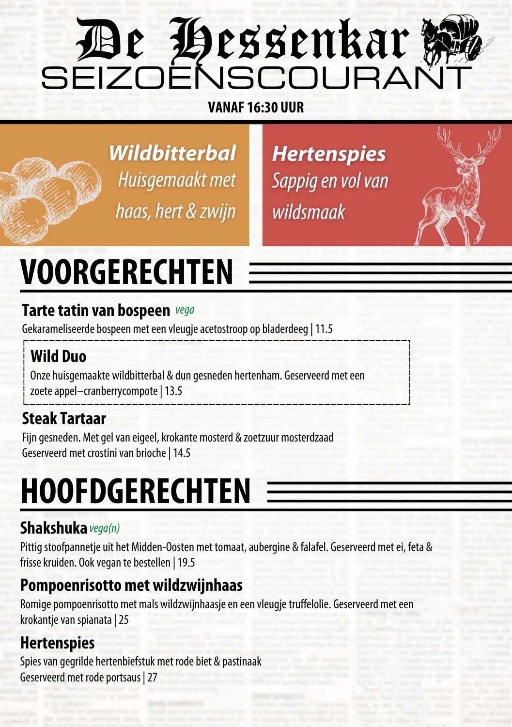 Bij Eeterij Tapperij de Hessenkar werken we met twee menukaarten: de Menucourant Klassiekers en de Seizoenscourant.